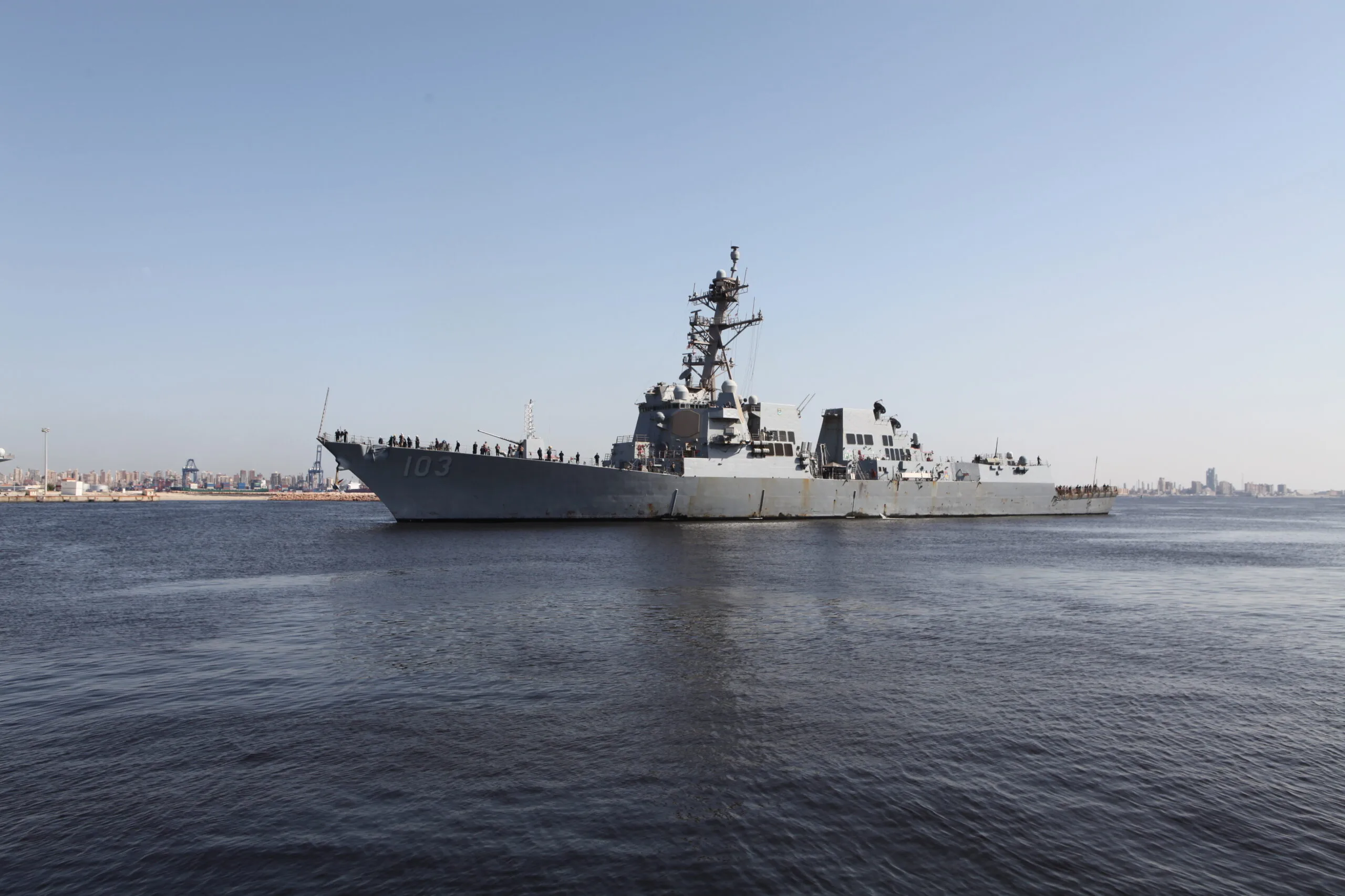 Arleigh Burke-class guided-missile destroyer USS Truxtun (DDG-103) pulls into port at the Ras Al Tin Naval Base during exercise BRIGHT STAR 25 in Alexandria, Egypt, Sep 1, 2025. US Central Command photo