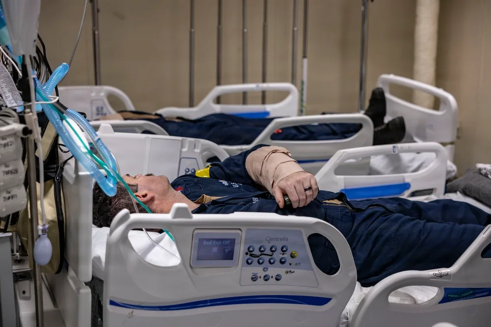 A U.S. Sailor, assigned to the Iwo Jima Amphibious Ready Group, uses a thermal imaging camera to check for hot spots during an integrated training evolution aboard Wasp-class amphibious assault ship USS Iwo Jima (LHD 7) while underway in the Caribbean Sea, Feb. 28, 2026. U.S. military forces are deployed to the Caribbean in support of the U.S. Southern Command mission, Department of War-directed operations, and the president’s priorities to disrupt illicit drug trafficking and protect the homeland. (U.S. Navy photo)