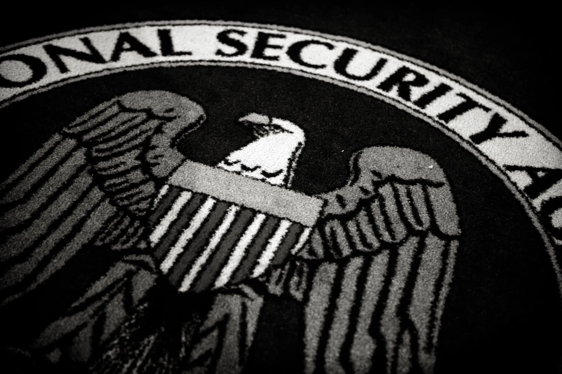 An emblem on a rug inside the National Security Agency (NSA) headquarters in Fort Meade, Maryland outside Washington, DC. The NSA is the central producer and manager of signals intelligence for the United States. It operates under the jurisdiction of the Department of Defense and reports to the Director of National Intelligence. (Photo by Brooks Kraft LLC/Corbis via Getty Images)
